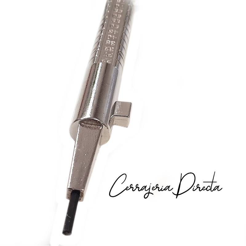 En su punta incorpora un cuadradillo cónico para activar cerraduras que lleven maneta incorporada.