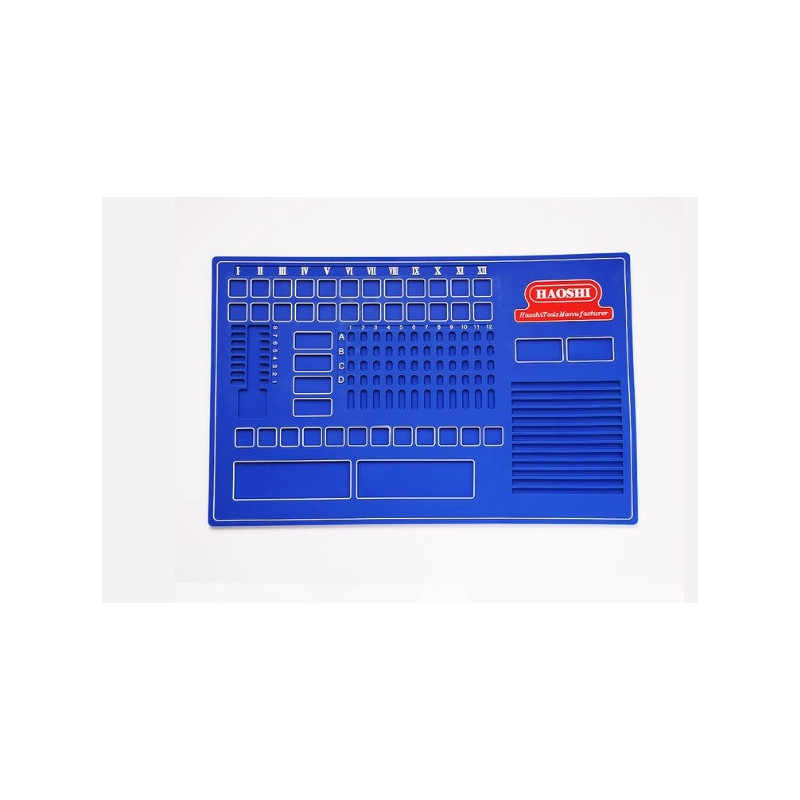 Alfombrilla de alta calidad para trabajos con bombines y demás herramientas de cerrajeria. Con grandes compartimentos y huecos mucho mas pequeños para posicionar muelles y pines.