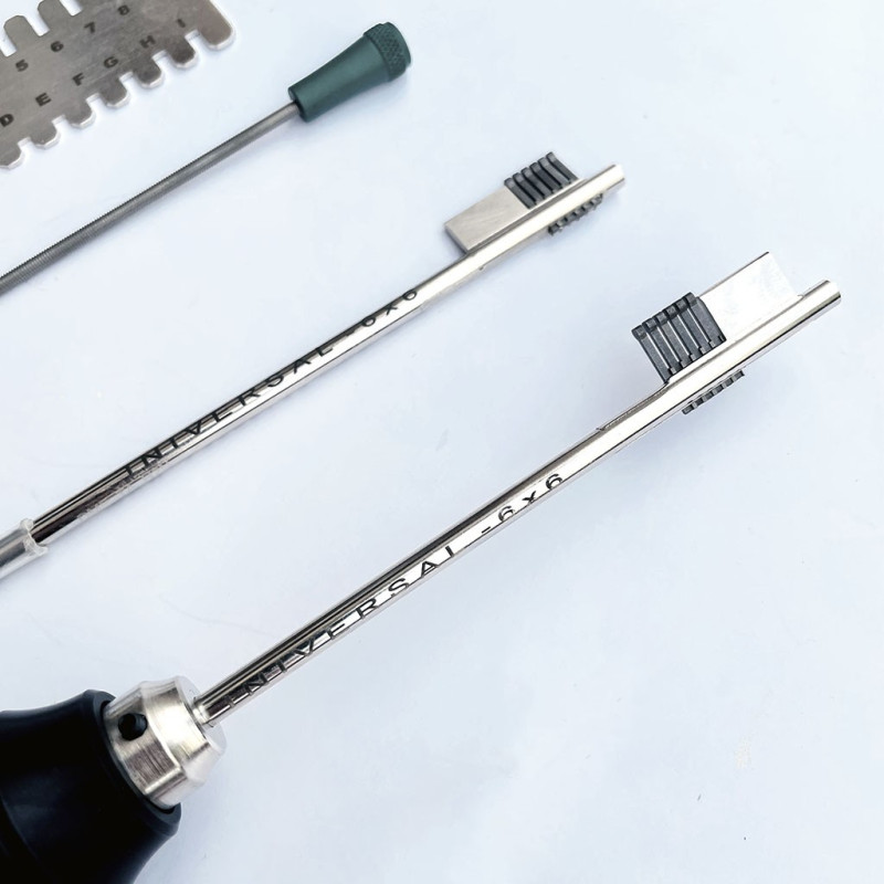 Ganzúa de gorjas especialmente diseñada para cerraduras que tengan una combinación de 6x6.