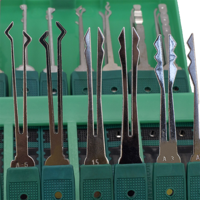Incluye ganzúas para serreta y seguridad, tipo hook, diamante, redondas y muchas más que facilitarán tu trabajo.
