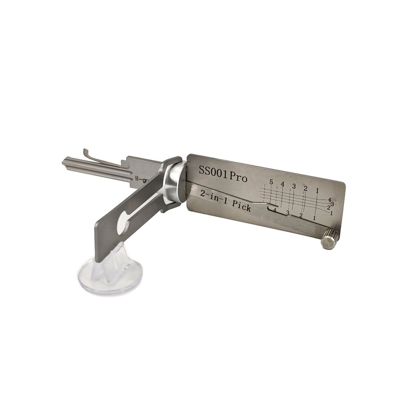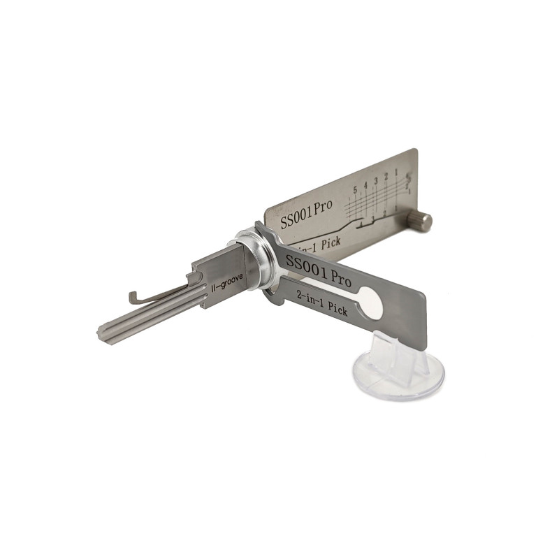 Perfil SS001 con 2 carriles en el espadin de llave posicionando la ganzua con los pines hacia abajo.