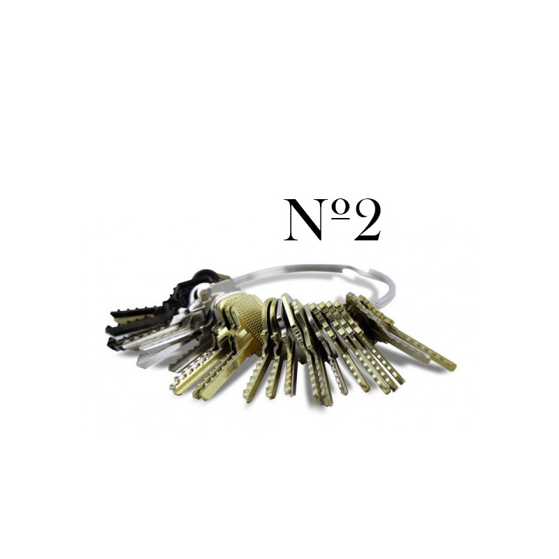 El juego Nº2 de llaves bumping contiene 25 llaves bumping de serreta, todas diferentes y de marcas Españolas, para poder abarcar el mayor numero de bombines que podamos abrir fácilmente.