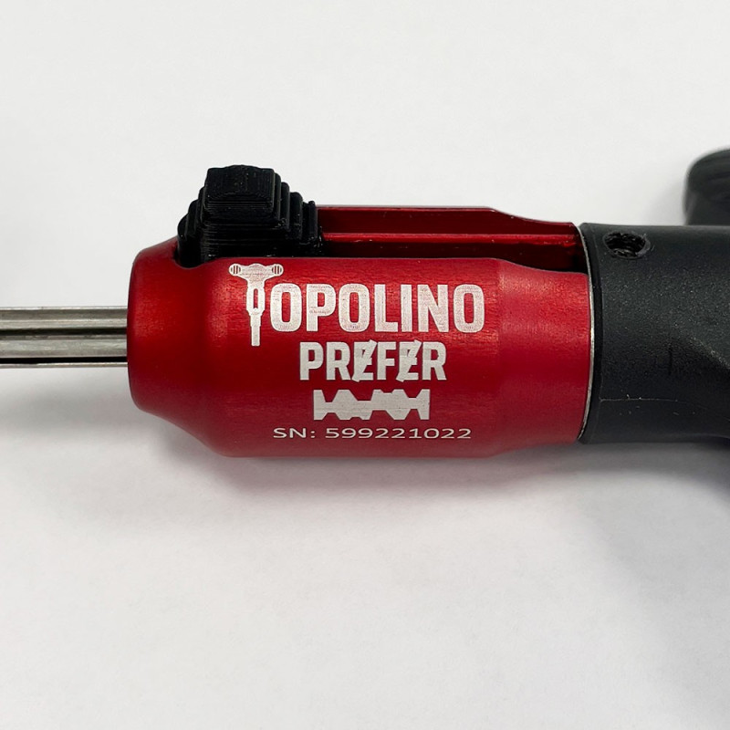 Inserte la cuchilla del Topolino en la tapa de reinicio, las dos flechas deben coincidir en su posición (ver el video).